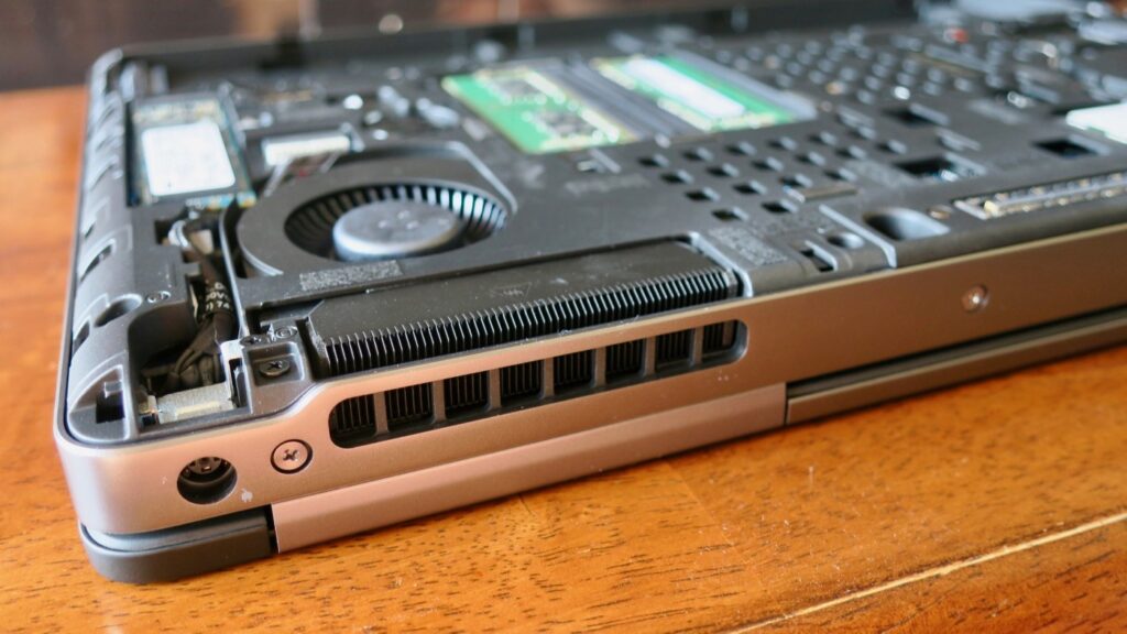 سیستم خنک‌کننده در Dell Precision 7520 به‌صورت حرفه‌ای مهندسی شده تا دمای CPU و GPU را در بارهای سنگین پردازشی کنترل کند. این دستگاه از چند فن مجزا، کانال‌های جریان هوا و هیت‌پایپ‌های کارآمد بهره می‌برد که به دفع یکنواخت حرارت کمک می‌کنند. در تست‌های رندرینگ طولانی، طراحی تهویه باعث می‌شود CPU و GPU بتوانند برای دوره‌های طولانی‌تر در فرکانس‌های بالا کار کنند بدون اینکه تراتلینگ شدید ایجاد شود.